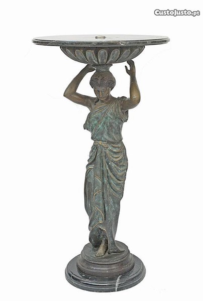 Invulgar e rara Mesa circular com tampo em mármore, assente em escultura feminina em bronze patinado.