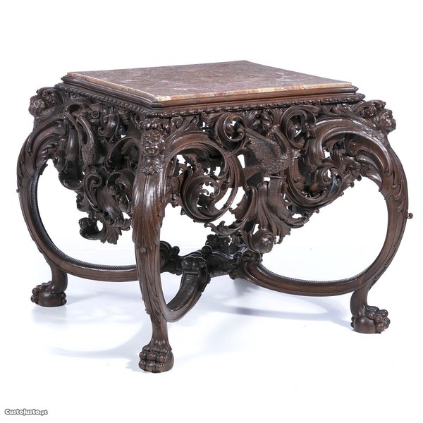 Mesa renascença, do séc. XIX, em madeira com entalhamentos.