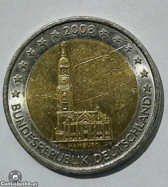 Moeda 2 comemorativa Alemanha 2008 letra F , com erro na sua cunhagem!