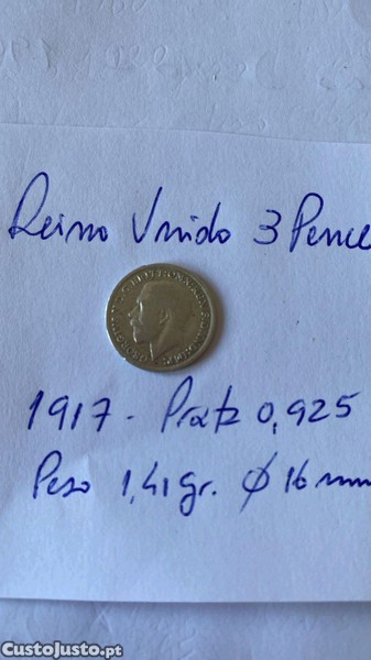 Moeda em prata Reino Unido 3 Pence 1917