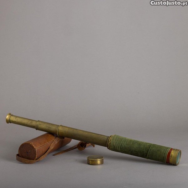 Monóculo inglês em metal amarelo revestido a madeira, marcado Fairey London. Séc. XIX/XX