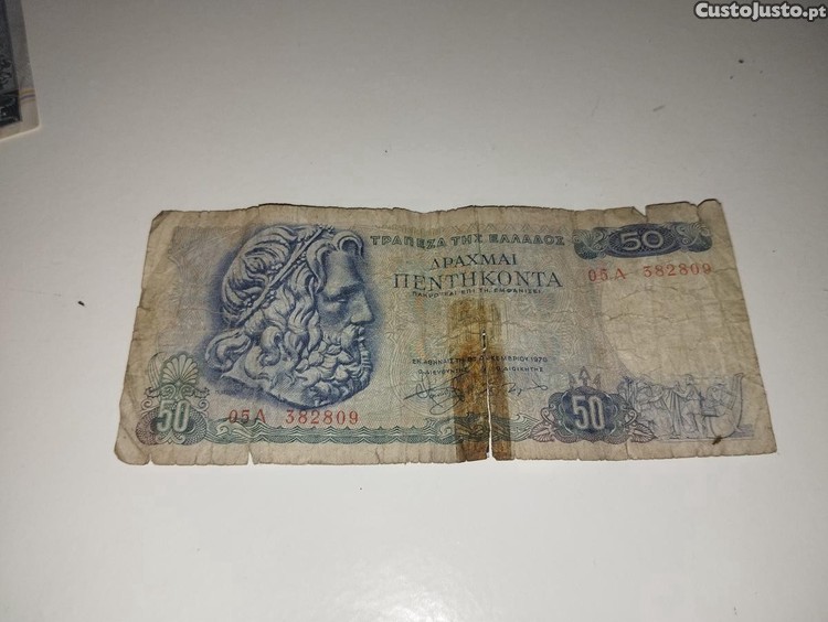 Nota 50 drakmas gregaa antiga 1978 estado razoável