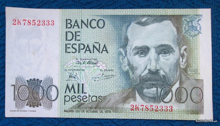 Preço: 11 €Nota de 1000 pesetas 1979 serie 2K