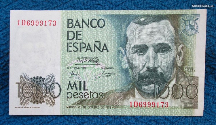 Preço: 10 €Nota de 1000 pesetas 1979 serie 1D