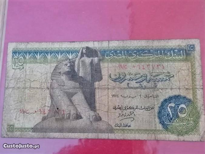 Nota de 25 Piastres do Egipto, de 1922, no tempo em que era uma Colónia Britânica.
