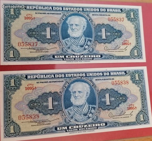 Preço: 3 €Notas do Brasil de 1 Cruzeiro, de 1956