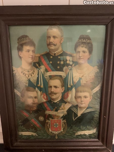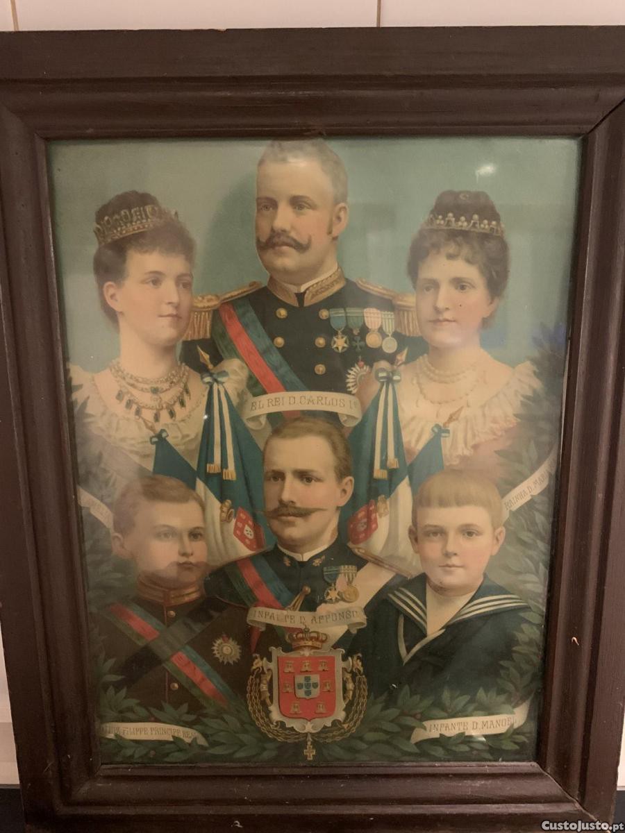 Óleo gravura sobre papel - Família Real Portuguesa.