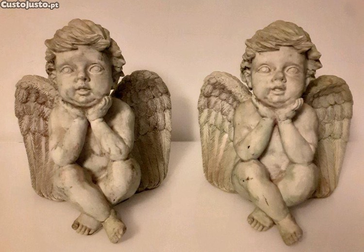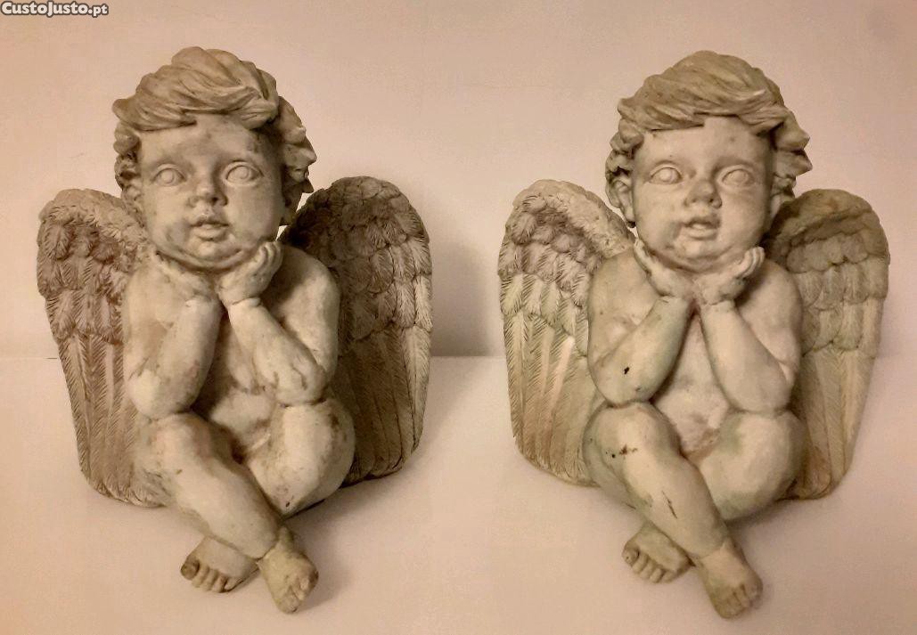 Par de Anjos Vintage, material sintético com acabamento manual a imitar o mármore ou gesso antigos, alt. 22cm, larg.18cm.