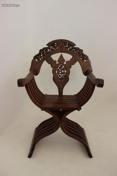 Par de Cadeiras Savonarola em madeira, com entalhamentos vegetalistas e realces dourados. Origem Itália, final do século XIX.