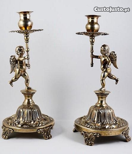 Par de castiçais com querubins em prata