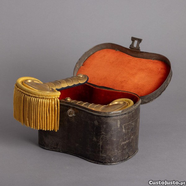 Par de dragonas portuguesas do séc. XX, com estojo em metal dourado, estojo em folha de metal, interior forrado a veludo com divisórias.