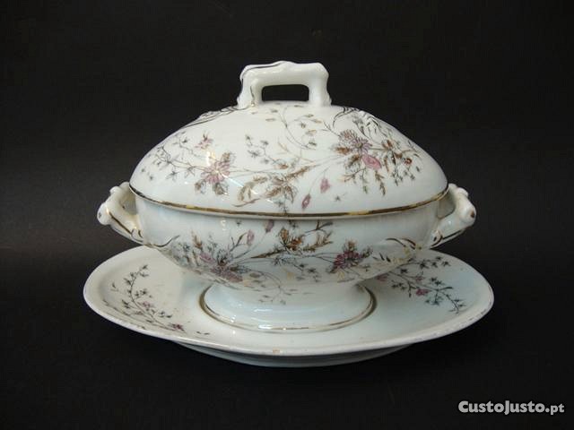 Preço: 50 €Pequena Terrina antiga com prato em porcelana V.A.