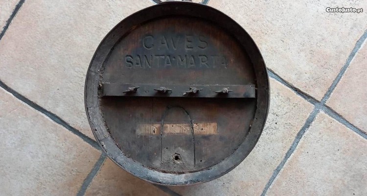 Pequeno pipo/barrica/pipa antigo, em madeira, da Adega de Santa Marta (de Penaguião). Não tem torneira, nem rolha. Apresenta sinais de uso, com alguns dos aros metálicos a precisarem de melhor colocação. Vestígios de bicho da madeira xilófagos inactivos, conforme foto que se junta. Julgo ser de 10 l, mas não tenho a certeza! Dimensões aproximadas: 19,5cm de diâmetro, medido na base, por 37cm de altura.