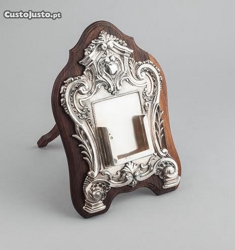 Porta-Cartões em madeira de pau-santo e prata portuguesa, marcada e contrastada. Em ótimo estado de conservação. Origem Portugal, século XIX/XX.