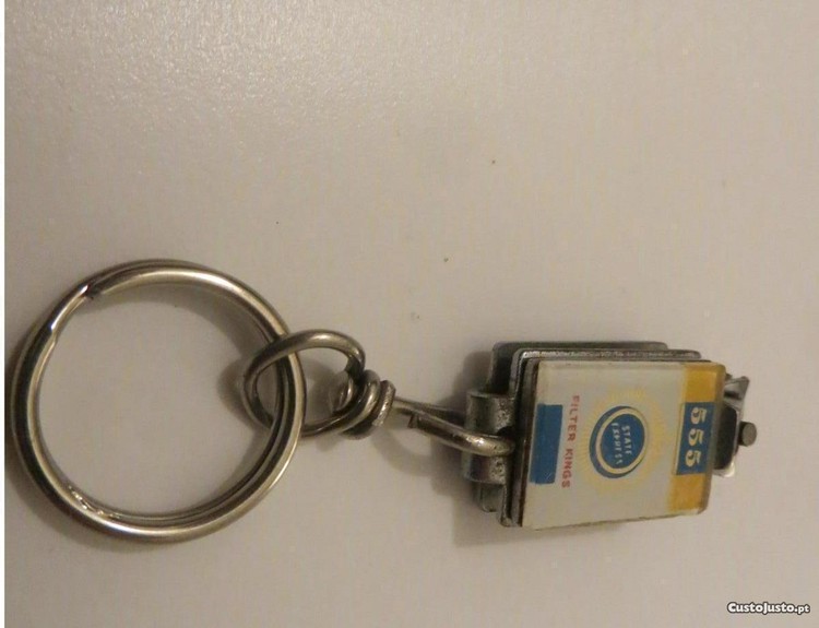 Preço: 5 €Porta chaves maço cigarros "555 filter kings", com corta unhas integrado, Em metal