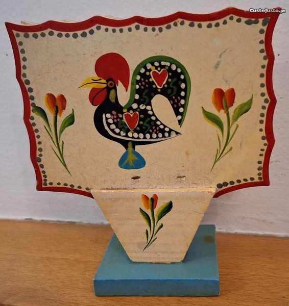 Preço: 8 €Porta guardanapos vintage em madeira pintada, galo de Barcelos