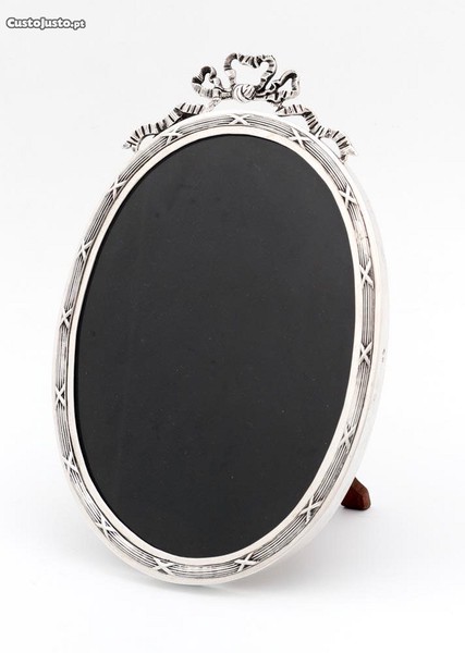 Porta - retratos oval moldura em prata portuguesa, decoração de friso emoldurado por laço, contraste do Porto.