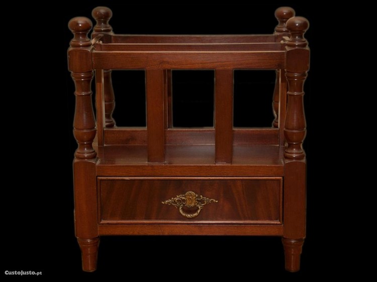 Porta revistas antigo em madeira de mogno maciço