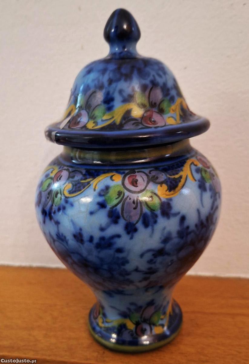 Preço: 15 €Pote com tampa em faiança Vistal, motivo 84