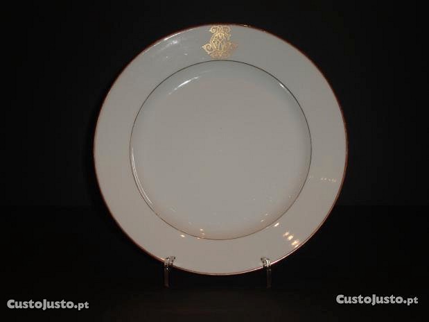 Prato antigo com marca pocessória pintado a ouro fino, em porcelana marcado no verso.
