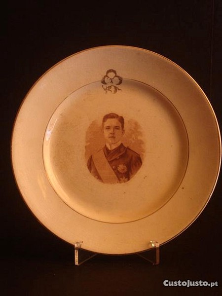 Pratinho em faiança da Real Fábrica de Sacavém, com cerca de 100 anos, representando o Rei D. Manuel II.