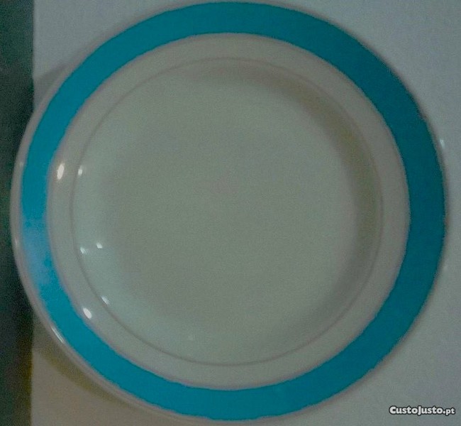Prato com mais de 100 anos, de louça tradicional à época, da Louças de Sacavém, em bom estado, com o diâmetro de 20cm.