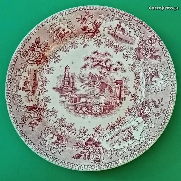 Preço: 21 €Prato raso em faiança Massarelos Porto, estátua vermelha