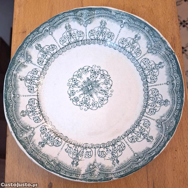 Preço: 9 €Prato raso em faiança Sacavém Gilman, motivo Rio, verde