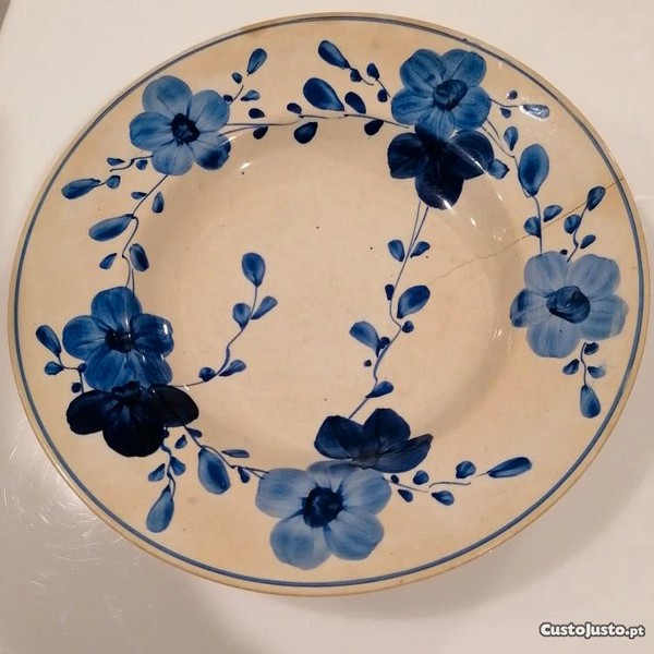 Preço: 14 €Prato sopeiro em faiança Sacavém, flores azuis
