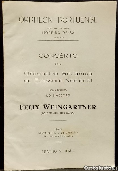 Preço: 9 €Programa 1940 Maestro Felix Weingartner