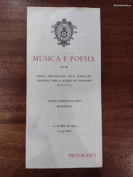 Preço: 3 €Programa de Música e Poesia no Teatro Constantino Nery 1973 Matosinhos