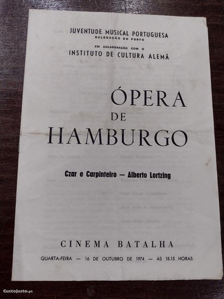 Programa Ópera de Hamburgo 1974 Cinema Batalha