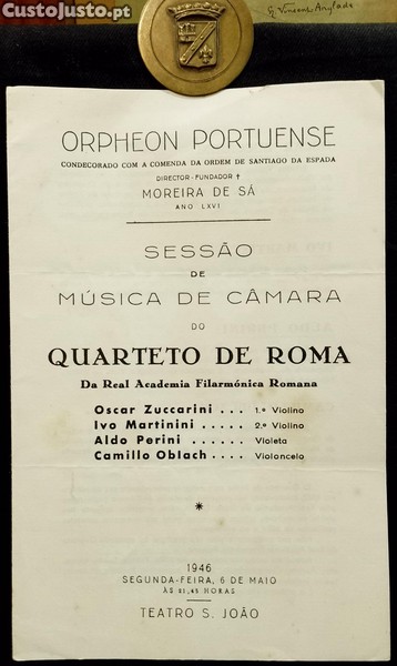 Programa Orpheon Portuense 1946 Quarteto de Roma