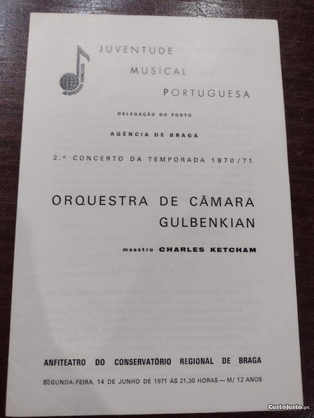 Preço: 7 €Programa Orquestra de Câmara Gulbenkian - Charles Ketcham 1971