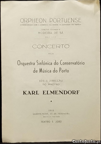 Programa Teatro S. João 1949 Maestro Karl Elmendorf