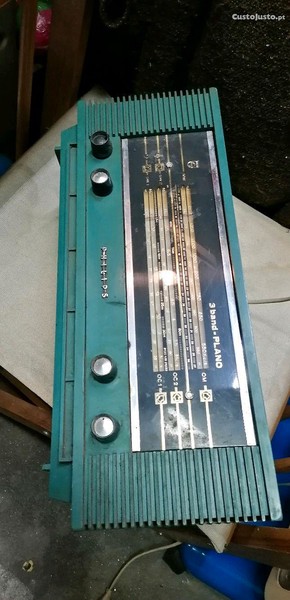 Rádio antigo Philips, cai a azul plástica de médias dimensões. Tem algumas marcas no topo. Ver fotos detalhadas.,liga e acende luzes, sintonizar mas penso que não deverá ter fm pois não sintonizou nenhuma emissora conhecida. Ver fotos e estado.cinquenta e cincoeuros ou troco outro rádio.