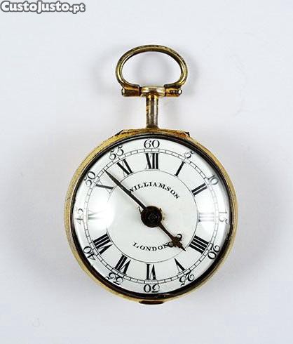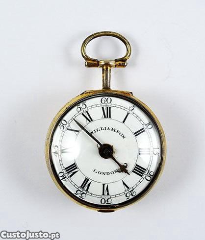 Raro relógio de bolso (Caldeirão) do séc. XVIII Joseph Williamson, London. Movimento mecânico de corda de chave.