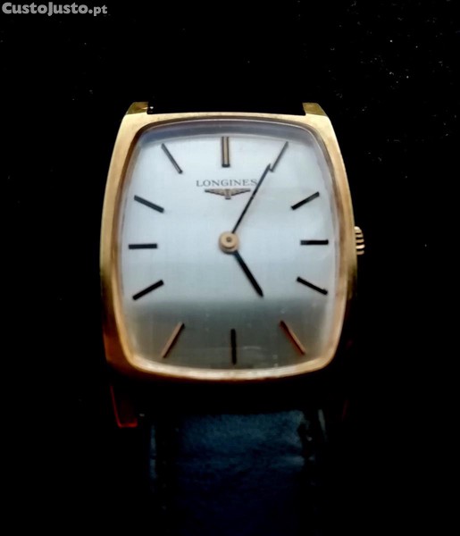 Relógio retangular ovalizado caixa em ouro com dois contrastes, extremamente elegante com o mostrador prata e numeração em traço, preciso e em ótimo estado com muito poucas marcas de uso, totalmente original coroa com o logotipo e a marca Longines.