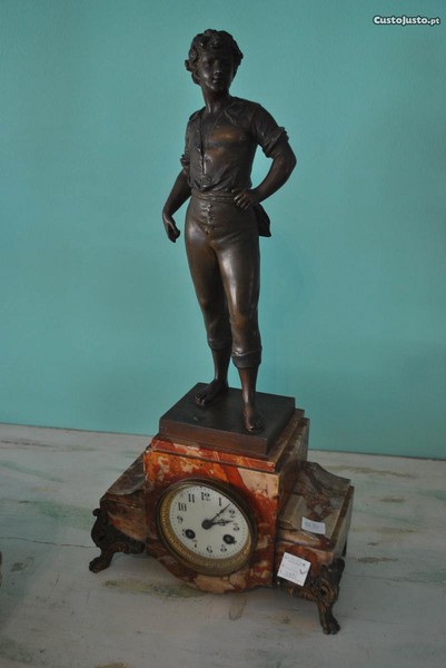 Preço: 345 €Relógio antigo com estatueta em antimónio