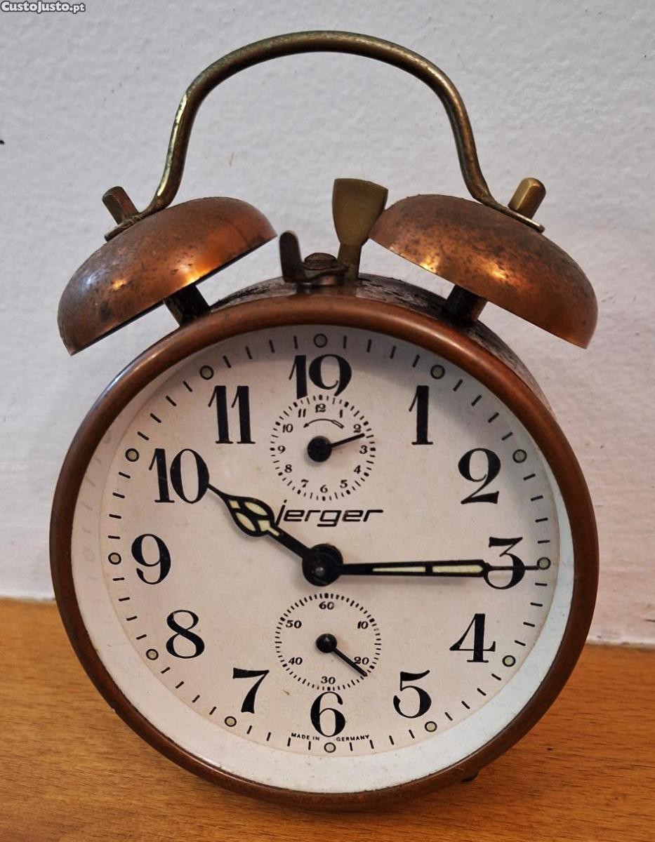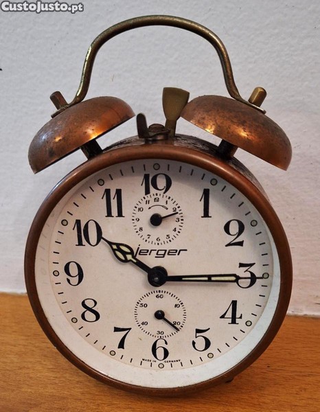 Preço: 45 €Relógio despertador alemão Jerger, com duas campaínhas