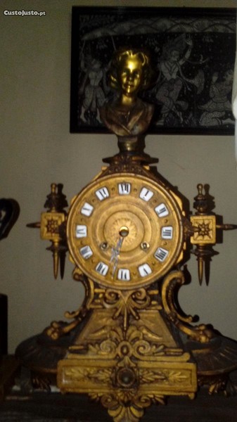 35cm metal antimonio dourado relógio de mesa com busto flor agreste*soares dos reis em bronze antigo original assinado *