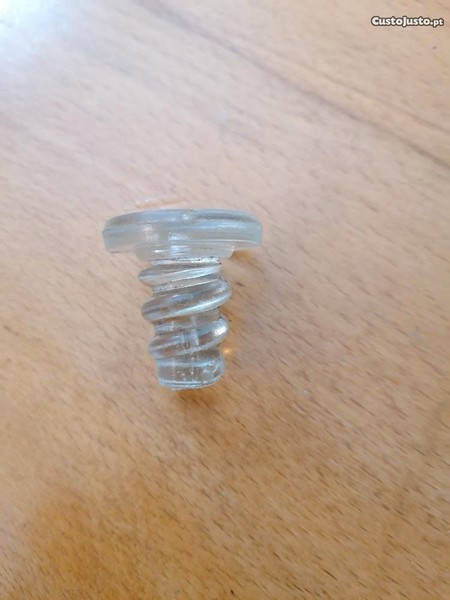 Rolha antiga, em vidro incolor, para garrafas em vidro, de rosca.