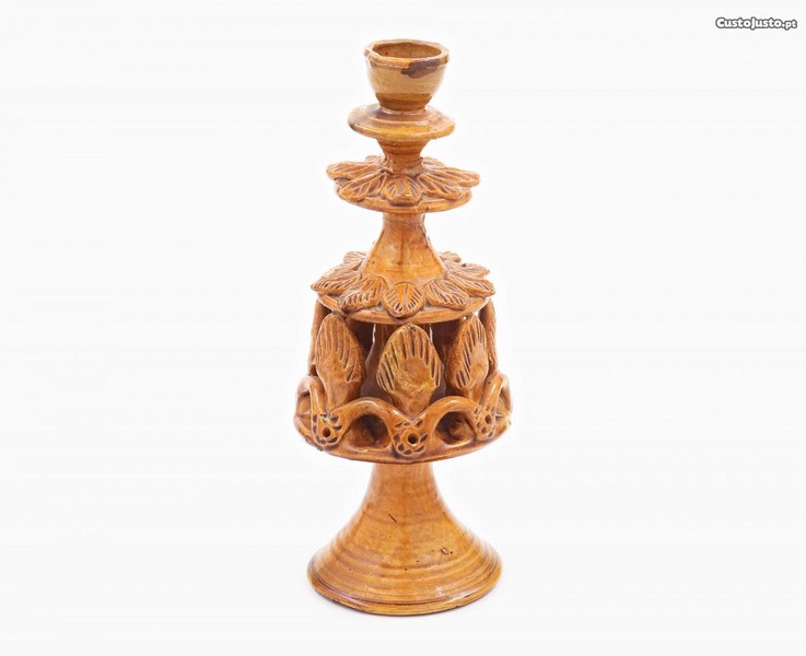Artigo em barro moldado, vidrado em tons de castanho, assinado Rosa Ramalho (1888-1977).