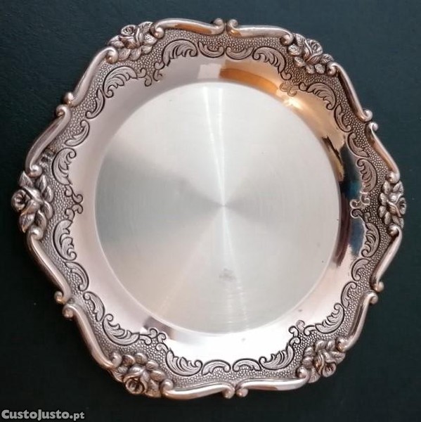 Pequena salva em prata Águia 835 (vulgo asa aberta), com bordo recortado e cinzelado trabalhado com aletas e flores.