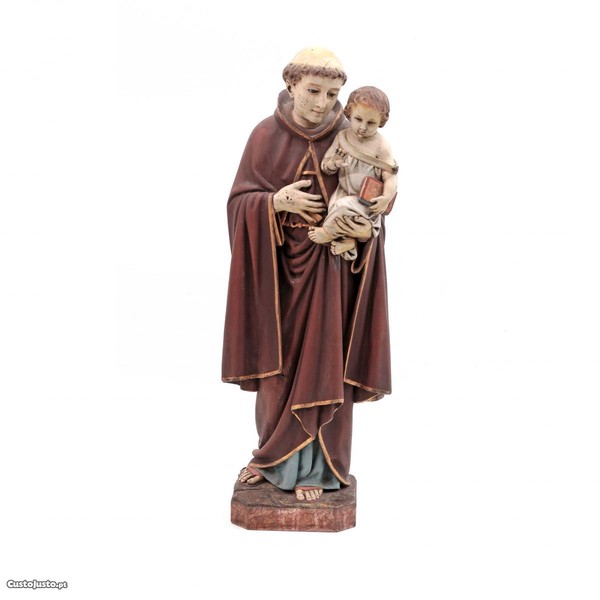 Santo António - escultura em madeira policromada com olhos em vidro. Assinada e datada "França, Esculp. - Porto 1944".