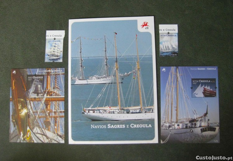 Série nº 4232/33, Blocos nº 472/73 e pagela Navios Sagres e Creoula