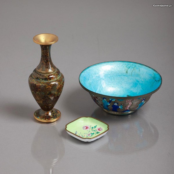 Preço: 180 €Taça , jarra e covilhete em cloisonné
