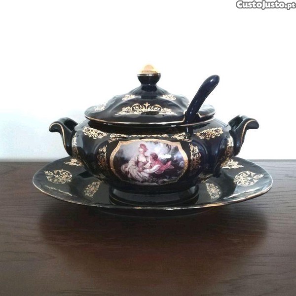 Artigos clássicos, raros, de coleção, usados apenas para exposição/decoração, em bom estado geral de conservação mas com quatro pequenas "feridas" na terrina conforme exposto nas fotos anunciadas e que com a tampa colocada não são visíveis.