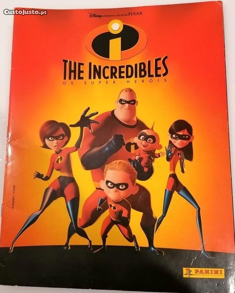 Álbum de 180 cromos do distribuidor Panini, The Incredibles, os Super-Heróis 2004, incompleto, com 42 cromos em falta, a saber: 8 16 28 30 38 39 42 47 49 51 60 67 78 81 82 84 86 88 89 92 96 97 99 101 102 105 110 111 122 127 142 153 154 155 158 161 166 171 174 175 176 e 177.