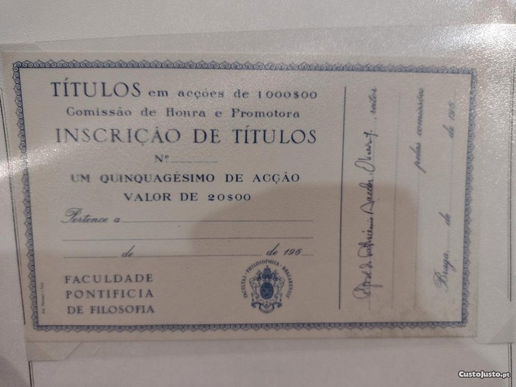 Título de Acção da Faculdade Filosofia de Braga